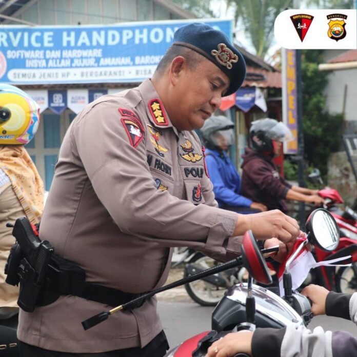 BENGKULU, Investigasi News– Dalam rangka menyambut dan memeriahkan Hari Ulang Tahun Kemerdekaan Republik Indonesia ke-80, Satuan Brimob Polda Bengkulu menggelar kegiatan berbagi 2.000 bendera Merah Putih kepada masyarakat. Kegiatan ini dilaksanakan serentak pada Selasa (5/8/2025) pukul 07.00 WIB di beberapa lokasi di wilayah Provinsi Bengkulu.